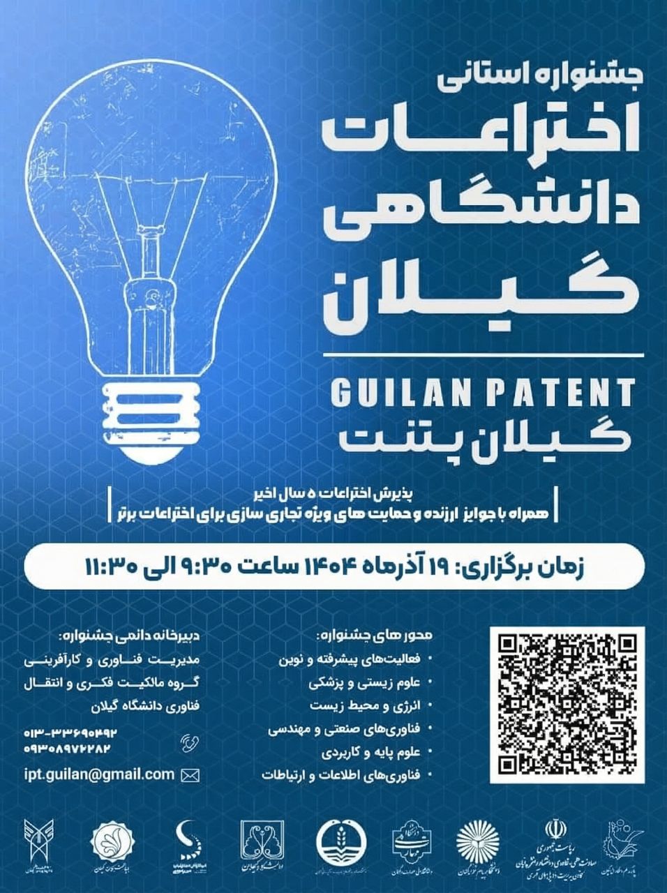 مدیر فناوری و کارآفرینی دانشگاه گیلان از برگزاری اولین جشنواره استانی اختراعات دانشگاهی گیلان در روز ۱۹ آذرماه ۱۴۰۴ در دانشگاه گیلان خبر داد.